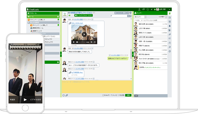 - 共有したファイルは相手に直接送信されず、サーバー上で一元管理されるため、ファイルを受信したメンバーが個々に保存・管理する必要がありません。