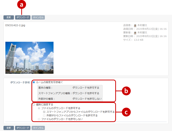 ファイル管理 > ルーム別ファイル管理の項目を押すと、ルーム別ファイル管理画面が表示されます。