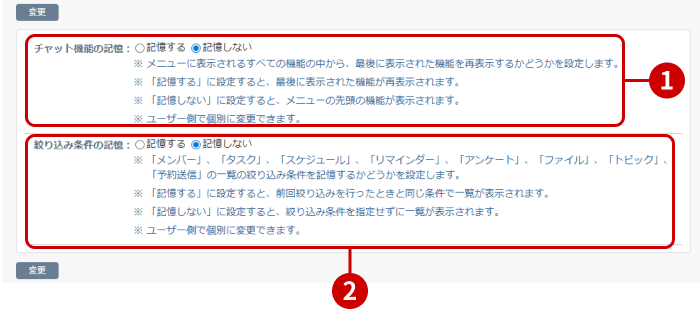 チャット機能記憶設定の項目を押すと、チャット機能記憶設定画面が表示されます。