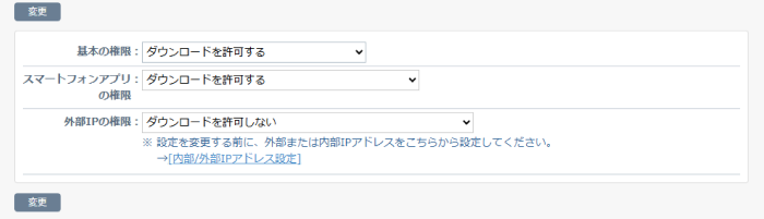 ルームやファイルごとのダウンロード設定は、ここで設定した値より緩く設定することはできません。