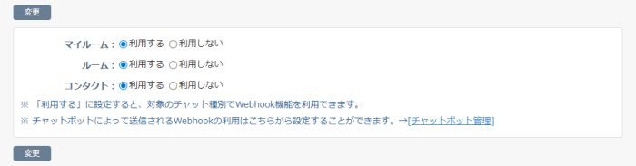 - マイルーム、ルーム、コンタクトそれぞれでWebhook機能を利用するかどうかを設定します。