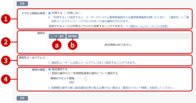 設定が完了したら、[変更]ボタンを押してデータを保存してください。