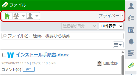 自分に関係のあるファイルのみが表示されるため、送信者で絞り込むことはできません。