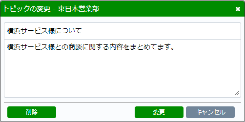 詳細ウィンドウの[編集]ボタンを押すと、トピックの変更ウィンドウが表示されます。