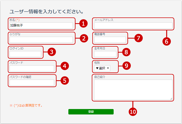 入力が完了したら、[登録]ボタンを押してください。