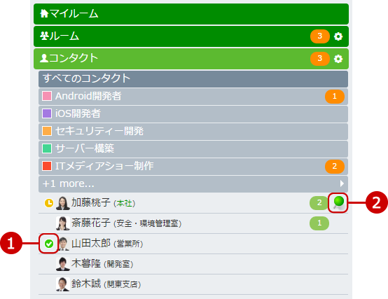 ※一度に表示されるコンタクト一覧の表示件数は個人設定から変更できます。
