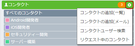 歯車アイコンを押すとコンタクト設定メニューが表示されます。
