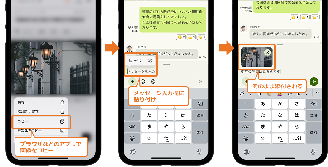 外部アプリでコピーした画像をすばやくチャットに送信できます。